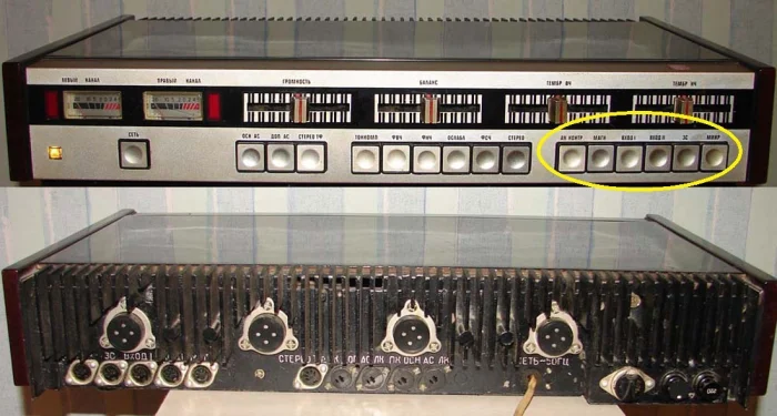 4. «Невозможно вставить штекер вслепую!». С этим я согласен: у многих моделей радиоаппаратуры гнезда располагались на задней стенке. Вставить штекер на ощупь в таком случае было крайне сложно, а каждый раз поворачивать тяжелый катушечник не хотелось. Чтобы облегчить жизнь меломанам, стали выпускать усилительно-коммутационные устройства, где источник сигнала менялся нажатием кнопки.