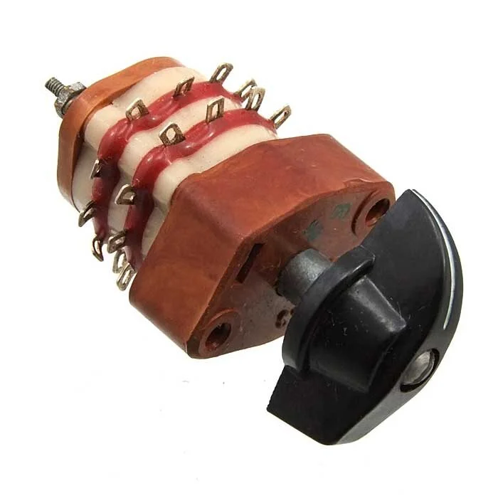 Однако такое решение помогало только на первых порах. Когда, помимо катушечника, появлялась кассетная дека, а друзья приносили свои магнитофоны, чтобы «быстренько» переписать новый альбом, никакой промышленный УКУ уже не справлялся. Когда мне достались галетные переключатели на 6 положений, я сразу понял, как их использовать.