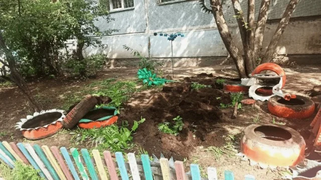 И вот он заметил цветы, посаженные в старые шины. Эти домашние клумбы из покрышек уже двадцать лет украшают многие дворы — ведь их просто покрасили, посадили цветы, и они выглядят вполне привлекательно.