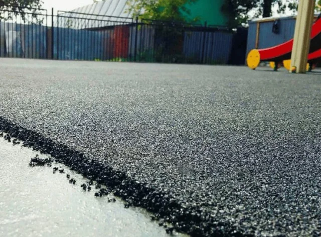 Недавно я посетил стадион с дочерью. Все новые игровые площадки покрыты резиновой крошкой.