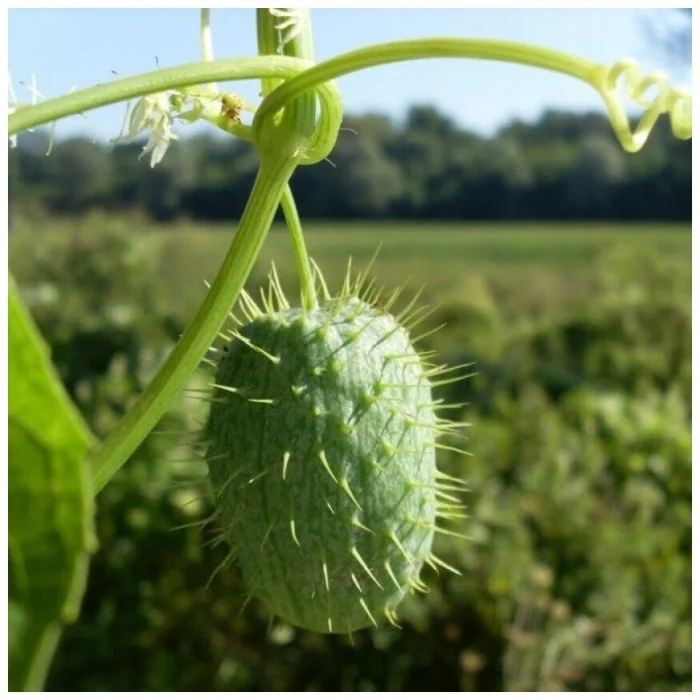 В интернете можно прочитать, что пупырчатые штуковины с мышиными хвостиками, которые вы видите ниже на фотографии, это "индийские огурцы". Да, их так называют, но на самом деле это не огурцы, а момордика - родственница тыквы.