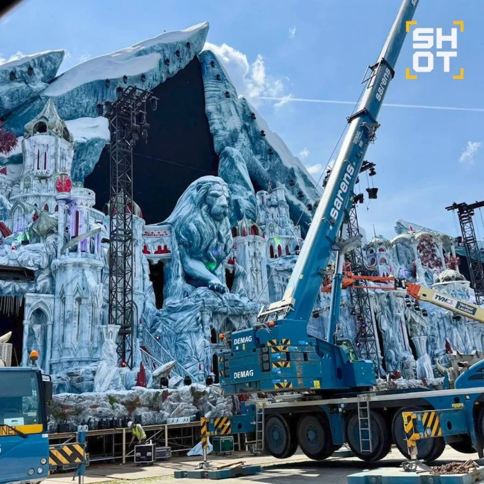 Наблюдатели заметили черный дым и огонь со стороны площадки, где 18 июля должны были выступить всемирно известные музыканты. Огненная волна уничтожила сказочные фигуры львов и замков, которые должны были стать частью шоу. Существует риск, что мероприятие могут отменить.