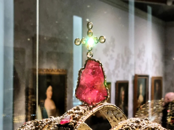 Дамы продолжали разговор, обсуждая корону Анны Иоанновны. Они говорили, что многие исторические камни преподнесли исследователям сюрпризы, и что сейчас нет единого мнения о том, какой камень находится на короне Анны Иоанновны.