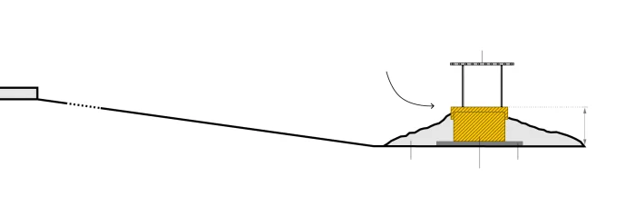 Проект был изменён спустя несколько лет, когда консорциум из четырёх строительных компаний во главе с Kumho Engineering & Construction возвёл массивные бетонные основания. В районе конца ВПП-19, куда произвел посадку рейс Jeju Air, подрядчики установили антенну на бетонной платформе, возвышавшейся более чем на два метра над землёй, и замаскировали её земляной насыпью, сделав конструкцию незаметной для пилотов. Причины отказа от первоначального плана остаются неясными, однако эксперты отметили, что бетон часто используется в строительстве из-за своей дешевизны и удобства.