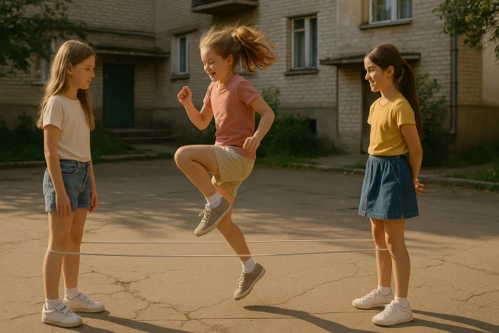 Во дворе всегда кипела жизнь: гулкие удары мяча о стену, звонкий смех, споры о правилах и крики «Я не водю!». Лето пахло мелом, пылью и свежескошенной травой, а асфальт был разрисован клетками «классиков» и следами от кроссовок. Мы собирались большими компаниями, делились секретами, соревновались в ловкости и всегда находили игру по душе. Эти дворовые забавы не требовали ни дорогих гаджетов, ни сложных правил — только немного фантазии и хорошая компания.