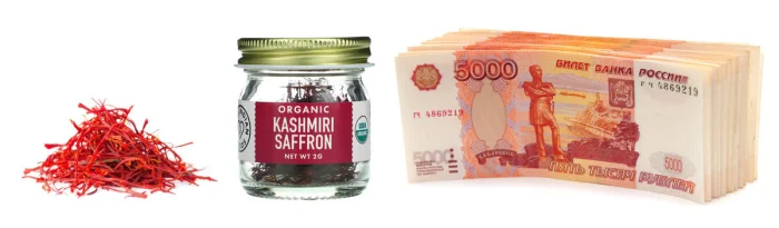 Впрочем, настоящие, качественные специи с тех пор не сильно подешевели. Вот эта баночка шафрана (два грамма полезного продукта) продаётся в интернете за 3120 рублей! А значит, без упаковки 400 граммов почти на полмиллиона рублей потянут!