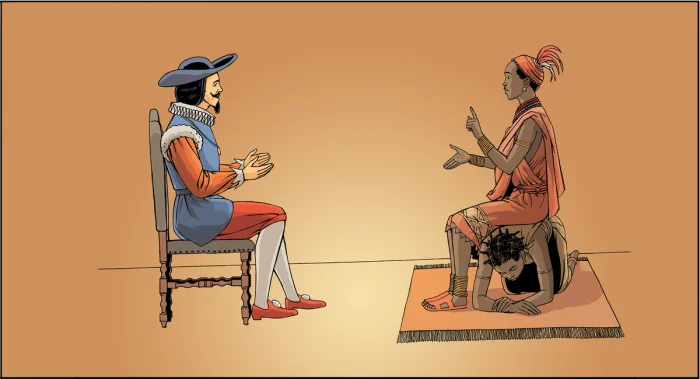 Королева Нзинга на переговорах с португальцами.