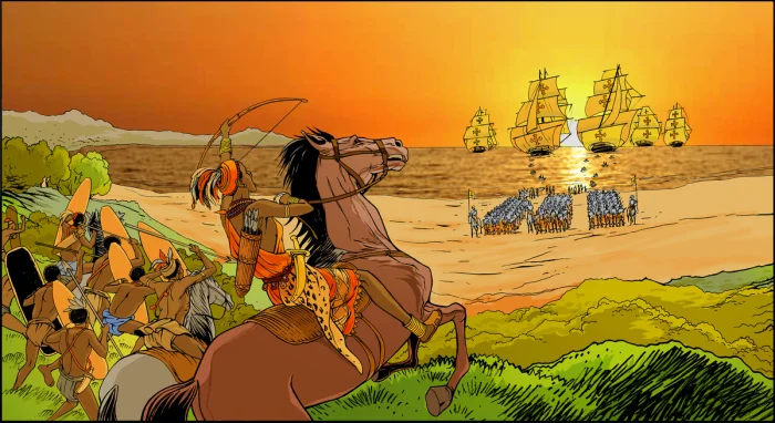 Нзинга готовится к сражению с прибывающими португальцами.