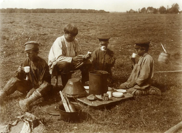 В работе Е. Варба «Наемные сельхозрабочие» приводилось типовое, обычное меню батраков: за завтрак — черный хлеб с водой, на обед — каша и черный хлеб, на полдник — черный хлеб с водой, на ужин — жидкая кашица и черный хлеб. На 40 человек сельхозрабочих хозяева-хуторяне отпускали один фунт масла (409 г), по 10 г на человека в день (обычно его добавляли в обеденную кашу). Не лучше питались и промышленные рабочие в городах. По данным профессора Ф. Ф. Эрисмана, единственный источник получения белка для рабочих — это черный хлеб и гречневая каша (75%). По данным на начало первой мировой войны (1911—1914 гг.), питание рабочих еще более ухудшилось. Фабричный инспектор С. Гвоздоев подсчитал, что на фабриках Петербурга рабочие могут тратить на еду лишь от 5 до 7 коп. в день, и что кроме хлеба и каши им достается не более 50, а то и 45 г мяса в день. Главными предметами питания являлись капуста и картошка, а также крупы (перловая и гречневая) и ржаной хлеб.