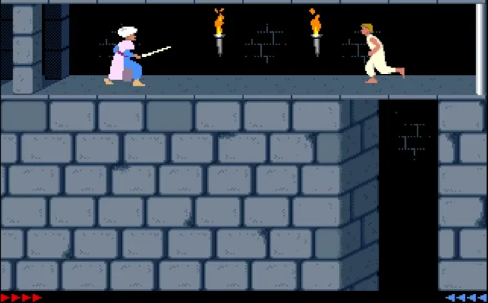 Ротоскопическая анимация, шестьдесят минут на спасение принцессы и подземелья, где каждое движение — цена. Управление намеренно «тяжёлое»: прыжки только влево/вправо, без коррекции в воздухе, зато ощущение веса и инерции — как в реальности. Здесь запоминают ловушки как стихи, «ощупывают» пол на шипы и ждут, когда пройдёт лезвие. Prince of Persia на Dendy — учебник того, как напряжение создают темп и тишина.