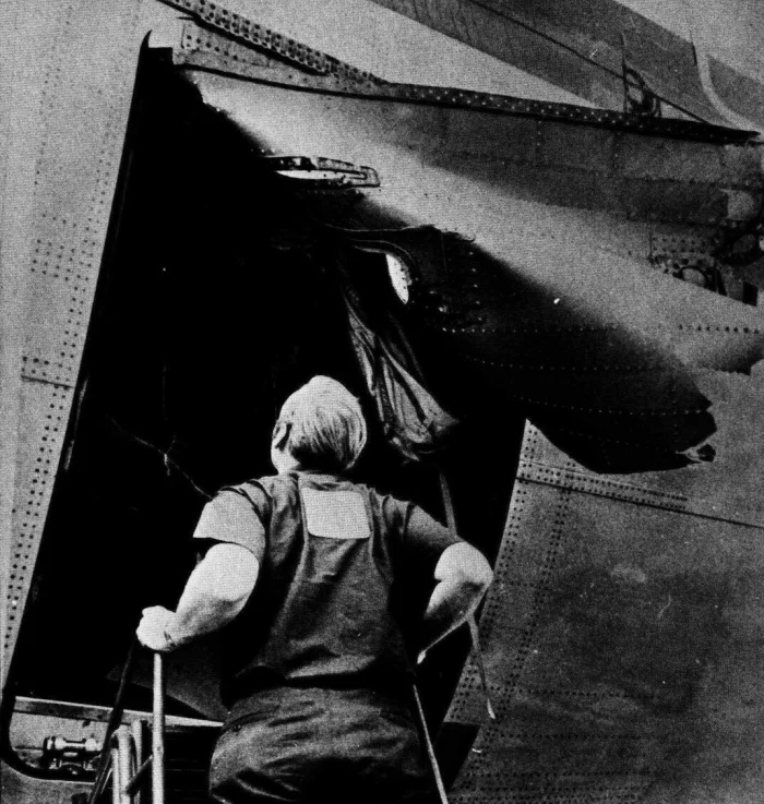 Резкое падение давления в грузовом отсеке буквально «высосало» пол в хвостовой части салона. Под разрушенным участком пола проходили электрические кабели, трубопроводы гидросистем и тяги систем управления. Часть из них была повреждена или полностью выведена из строя. Только подготовка КВС к действиям в случае подобных катастрофических отказов позволила благополучно завершить полет.