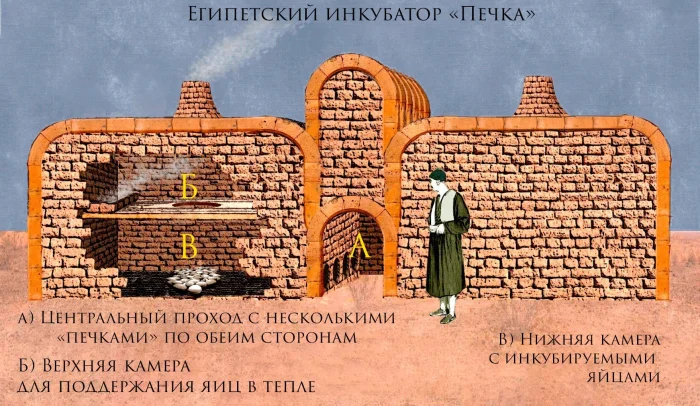 Древние египтяне были первыми, кто начал использовать птицеводческие инкубаторы. Их методы вызывали удивление и недоумение у иностранных путешественников, которые никогда не видели ничего подобного. Многие из этих путешественников оставляли в своих записках описания необычного метода, которым египтяне получали цыплят, часто ошибаясь в своих догадках из-за отсутствия информации.