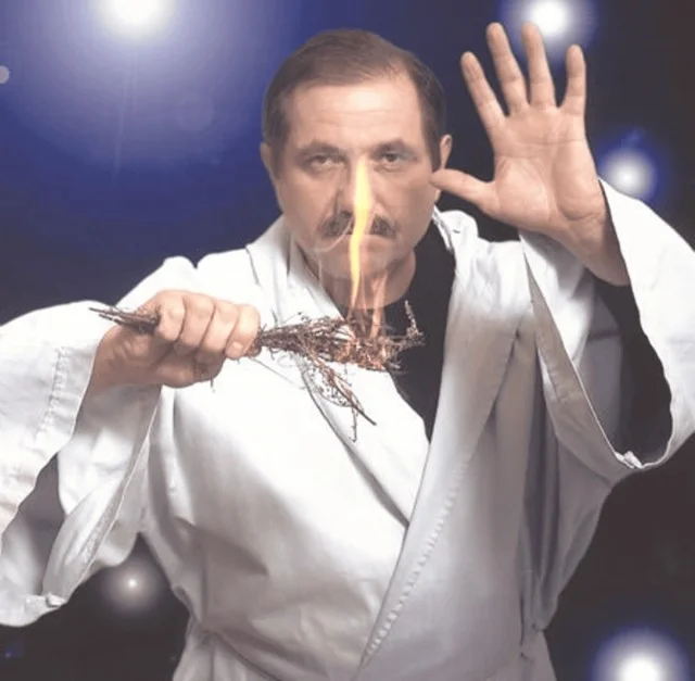 — Обыкновенную электроплитку за четыре рубля заваливали сухой травой и листьями, Юра делал пассы руками, и «вдруг» трава загоралась. Все просто фонарели! А на самом деле это пьяный Руслан вставил штепсель в розетку.