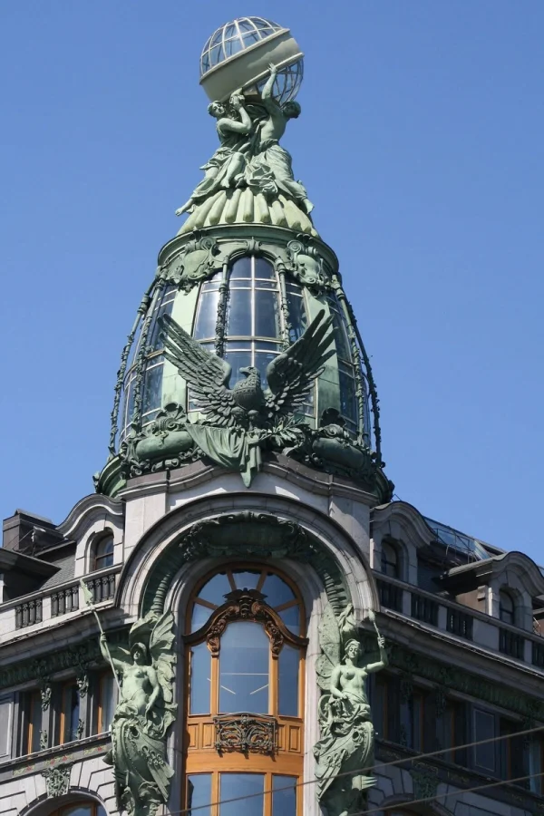 Но и это не все. Головная компания "Зингер" настолько впечатлилась результатами, что решила открыть премиум представительство в Петербурге, куда могли приезжать клиенты со всей Европы. Причем сделать это было решено с размахом. Американцы наняли одного из лучших архитекторов Европы — Павла Юльевича Сюзора. Русского архитектора и академика. В 1904 году по его проекту был построен "Дом Зингер" на Невском в Петербурге. Посмотрите, какой красавец.
