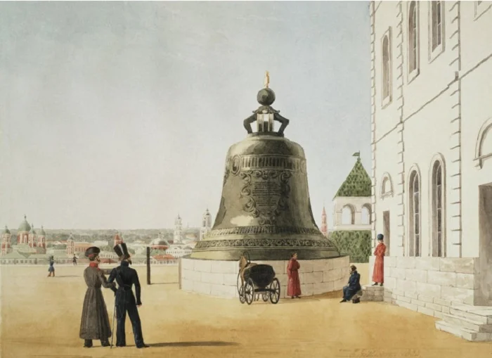 Борис Годунов отлил колокол, вес которого составлял почти 35 тонн. Позже Алексей Михайлович создал еще более внушительный экземпляр весом около 130 тонн. Этот колокол находился на специальной деревянной звоннице и функционировал несколько десятилетий, пока не был поврежден во время пожара в 1701 году. По легенде, именно из его обломков было решено отлить нового гиганта, превосходящего предыдущий по размерам.