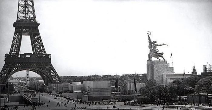 В мае 1937 года советский павильон предстал перед изумлённой публикой. Он располагался прямо напротив павильона нацистской Германии, увенчанного орлом со свастикой. Сверкающая стальная скульптура, устремлённая в небо, затмила своего идеологического оппонента. Французская пресса восторженно писала: "На Парижской выставке они были прекрасны, как юность мира". За этот проект Вера Мухина и Борис Иофан получили высшие награды Гран-при выставки.
