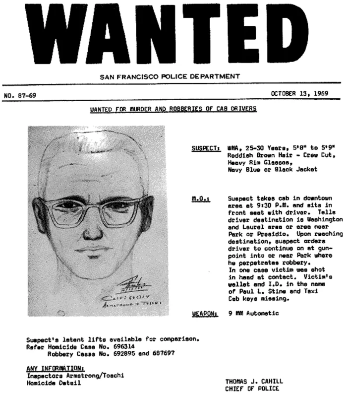 11 октября 1969 в полицию Сан-Франциско поступил тревожный звонок от перепуганных подростков. Они сообщили о том, что видели, как на перекрёстке улиц Вашингтон и Мэйпл остановился автомобиль такси, после чего пассажир (предположительно чернокожий мужчина), сидевший на заднем сидении, достал из за пазухи пистолет и выстрелил водителю в затылок.