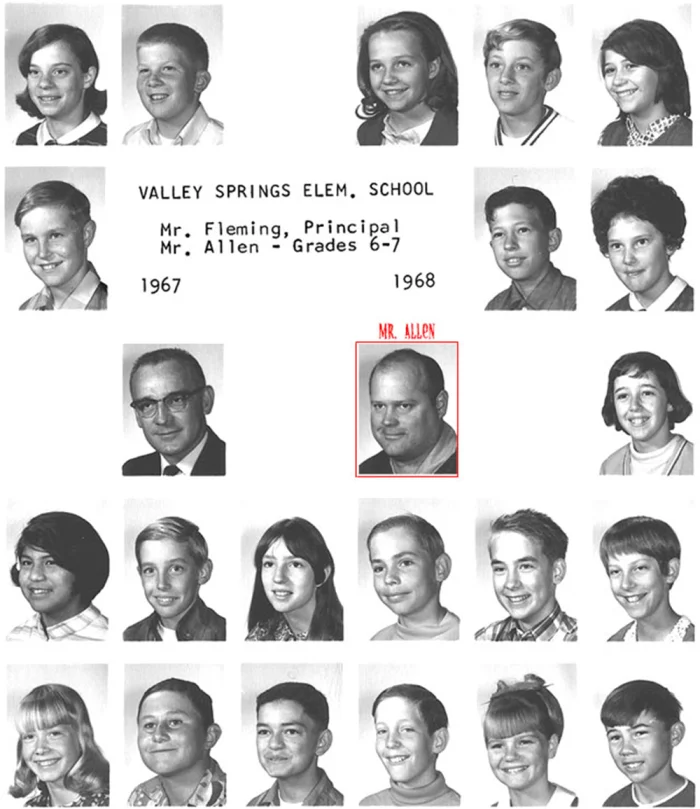 Немного покопавшись в биографии Артура, всплыли интересные подробности. Для начала, он был бывшим служащим ВМФ, откуда был выперт за проблемы с дисциплиной и склочный характер (следователи предполагали, что Зодиак является военным). Он всю жизнь прожил в округе Вальехо и прекрасно ориентировался на местности. У Аллена ранее были проблемы с полицией - несколько арестов, плюс личная обида, ведь после службы в ВМФ его не взяли на работу в SFPD из за плохой характеристики. Ну и на десерт - Артур был осуждённым педофилом, который потерял работу в школе из за домогательств к ученикам. Фото из школьного альбома приложено выше не просто так...