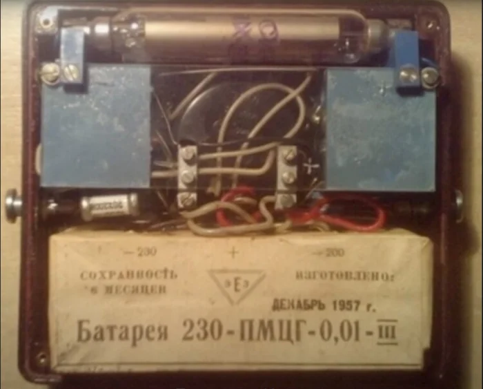 Батарейка сильно пострадала от времени, но даже в таком состоянии она выдавала около 30 вольт. Этой батарейке уже 68 лет!