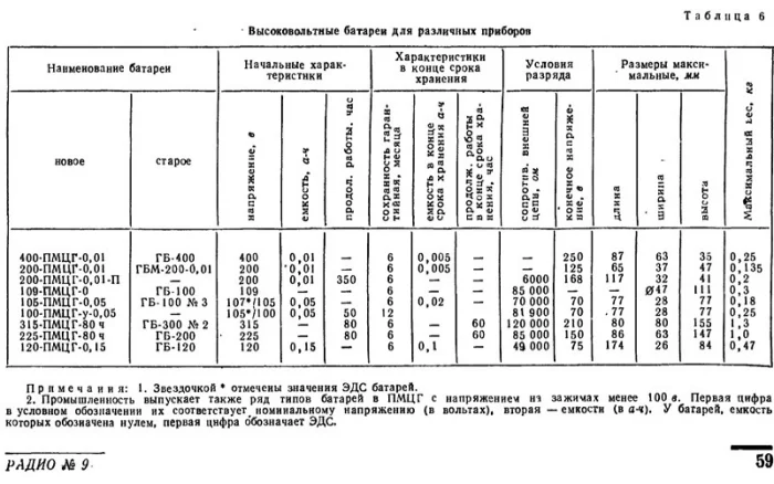 За годы своей радиолюбительской практики я ни разу не сталкивался с такой батарейкой. К счастью, в журнале «Радио» был раздел «Справочный листок», где я нашел информацию об этой серии батареек.