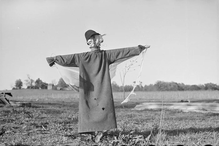 Первыми "пугалами" в истории были именно дети - на фресках египетских гробниц можно увидеть мальчиков, размахивающих палками среди полей и болот. Для них это было веселое занятие, напоминающее игру. В отсутствие детей фермеры создавали конструкции из подручных материалов: дерева, ткани, соломы или даже костей животных. Эти сооружения не обязательно имели человеческий облик - главное, чтобы они издавали шум на ветру и имели подвижные элементы вроде развевающихся лоскутов.