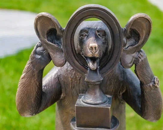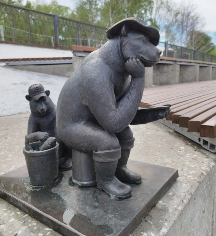 Без легенды никуда. Этот медведь — воплощение местного фольклора. Ушки большие, солёные и добрые. Туристы, конечно, не упускают шанса их потереть.