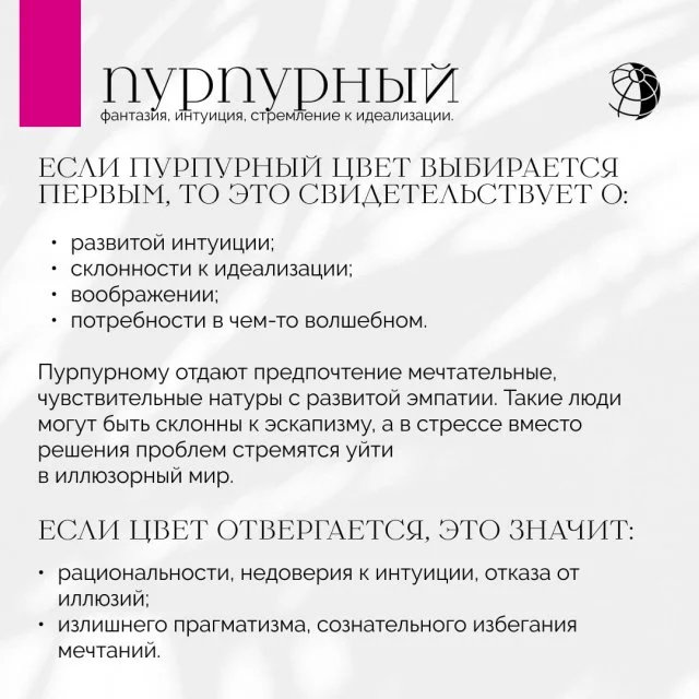 Знаменитый журнал предлагает провести небольшой тест Люшера. Вы выбираете цвет, благодаря чему сможете раскрыть внутренние конфликты, а также подавленные эмоции и многое другое.