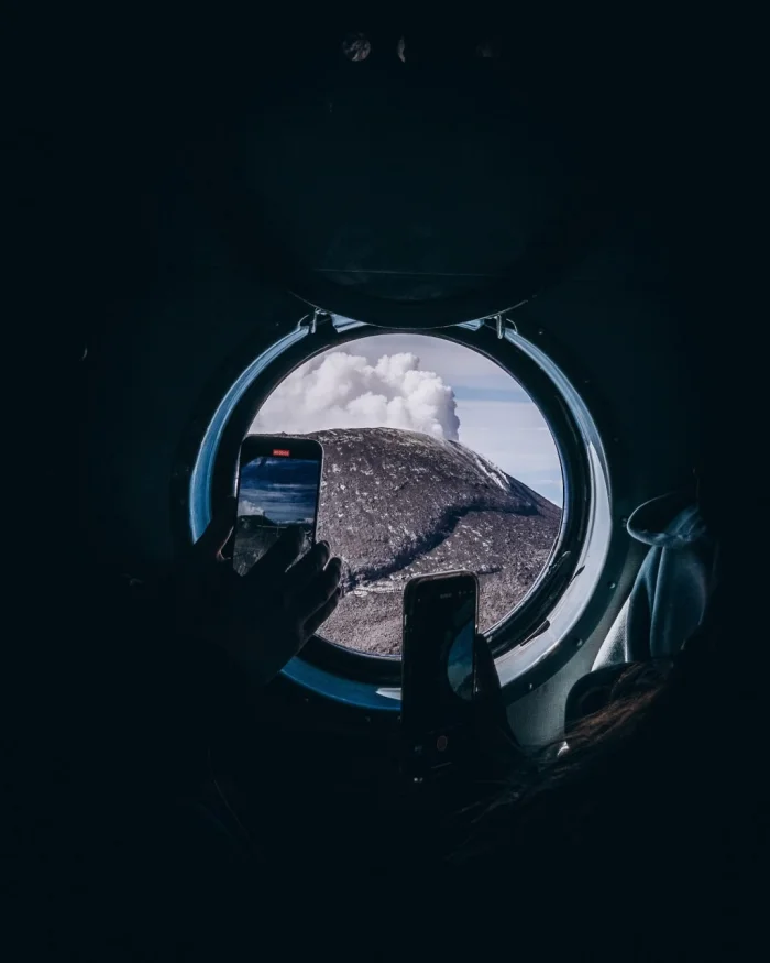 1️⃣ По следам недавних извержений — свежие лавовые поля и дымящиеся трещины.