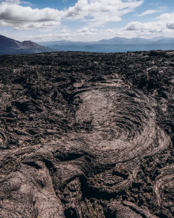 Его лавовые поля — это пейзаж из фантастического фильма. Черная застывшая лава, дымящиеся кратеры и следы извержения 2012–2013 годов.