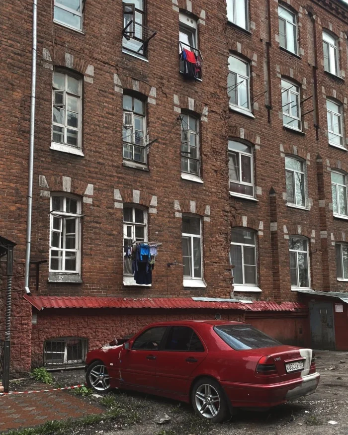 Но история, как известно, не щадит даже крепкую кирпичную кладку. В 2019 году дом признали аварийным... и на этом всё. Переселения нет, коммуникации рушатся, но жизнь продолжается.