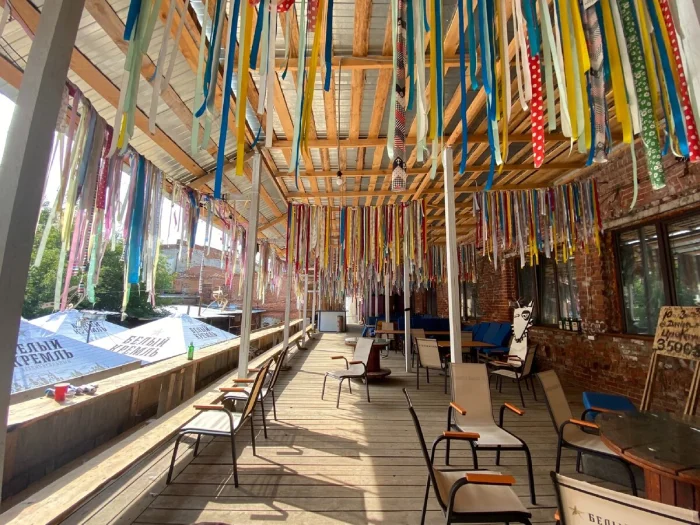 Самое неожиданное — ночной клуб во внутреннем дворике. В центре танцпола стоит бюст Ивана Алафузова, как будто он наблюдает за потомками, празднующими на месте его фабрики.