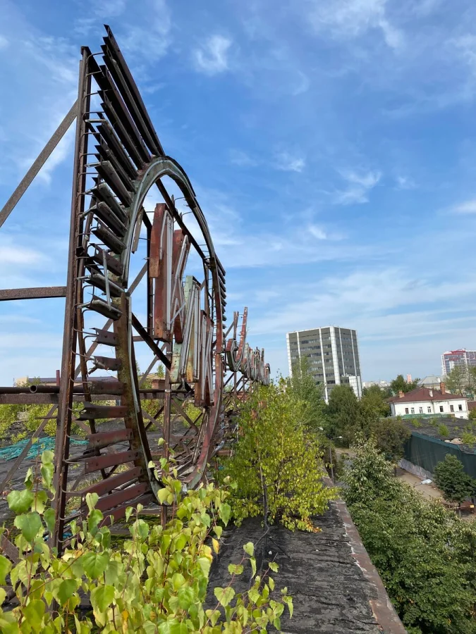 Поднявшись на крышу (по лестницам, которые не внушают доверия), можно увидеть панораму Казанского кремля и старинные дома вроде Дома Котелова 1833 года. На крыше — снова граффити, манекены и немного безумия.