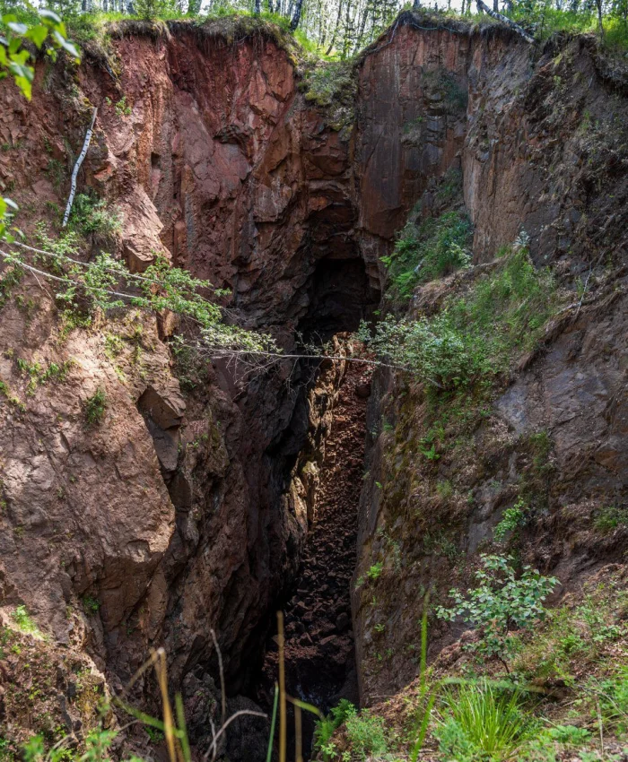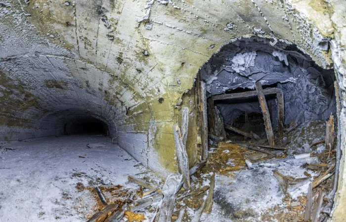 Но самое удивительное скрыто под землёй. В лесу до сих пор можно найти вентиляционные стволы, бетонные коридоры, деревянные крепи, подземные озёра подо льдом и туннели, где даже в июне температура ниже нуля. Это настоящий замурованный индустриальный лабиринт — холодный, темный и впечатляющий.