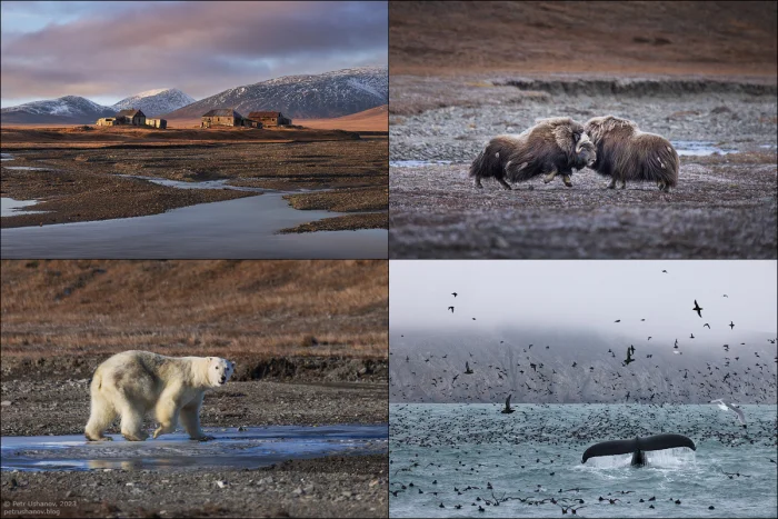 Особое место — остров Итыгран с легендарной Китовой аллеей: огромные челюсти и черепа гренландских китов длиной до 22 метров, выстроенные в мощный арктический ансамбль.