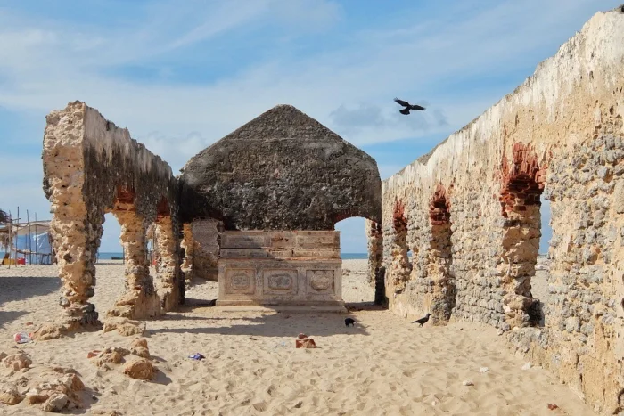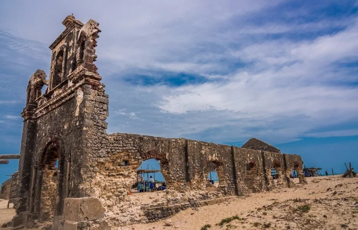 Полвека назад на противоположном конце острова существовал цветущий город Дханушкоди. Он располагался на песчаной косе, где ширина суши между Бенгальским заливом и Индийским океаном не превышает километра. Близость к Шри-Ланке сделала его важным торговым узлом с паромным сообщением, школами, больницами и железнодорожной станцией.