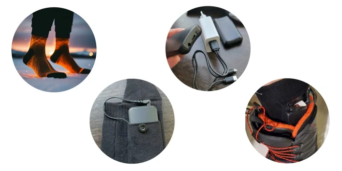 Аккумуляторы размещены в компактных кармашках на голени, что делает их незаметными при движении и позволяет использовать носки от 5 до 12 часов в зависимости от выбранного уровня обогрева. Зарядка осуществляется через USB-C, что делает их удобными в использовании: вы можете зарядить их одновременно с телефоном или пауэрбанком. Эти носки станут идеальным решением для длительных зимних прогулок, занятий зимними видами спорта или любых других ситуаций, когда обычные носки уже не справляются с холодом.