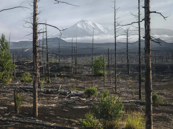 Мёртвый лес, расположенный у подножия Плоского Толбачика — одна из самых удивительных достопримечательностей Камчатки. На площади 40 км² простирается выжженная земля, ставшая следствием извержения в середине 1970-х годов. С тех пор лиственничный лес, засыпанный слоем застывшей лавы и пепла, так и стоит, сохраняя свои призрачные очертания. Окрестности Толбачика поражают своими марсианскими ландшафтами, а на его северном склоне можно обнаружить трещины, из которых выходит настолько сильный жар, что способен поджечь бумагу.