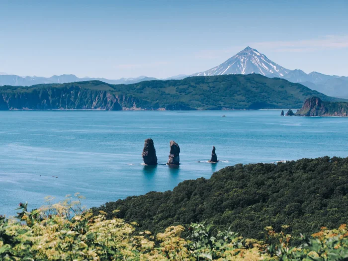 Кекуры Три брата (скалы в форме столбов) — узнаваемый символ Петропавловска-Камчатского. Они расположены у входа в Авачинскую бухту, в 300 метрах от берега, и являются местом обитания морских птиц и млекопитающих. Согласно легенде, скалы — это братья, которые окаменели, защищая бухту от разрушительной волны, и теперь вечно стоят на страже.