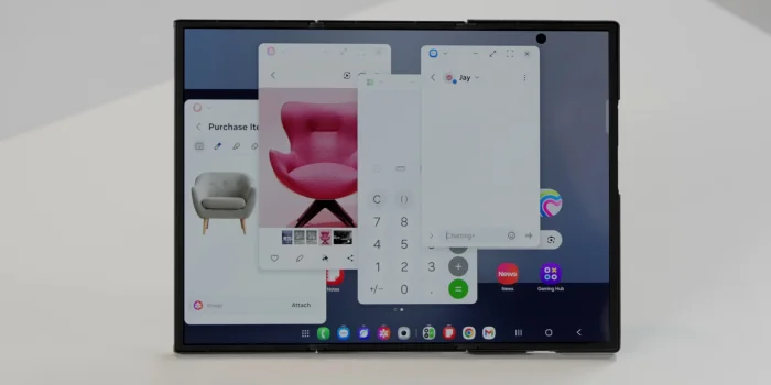 Galaxy Z TriFold поддерживает одновременный запуск трёх приложений и фирменную среду DeX без подключения к монитору. Толщина в сложенном виде — 12,9 мм, вес — 309 граммов. В основе конструкции — три панели разной толщины, складывающиеся внутрь.