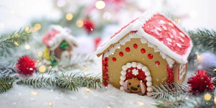 Пряничный домик — это не только вкусный и необычный десерт, но и сказочный элемент новогоднего декора. Выпекать детали самостоятельно необязательно: в продаже есть готовые наборы, куда входят все необходимые части съедобного домика, украшения (конфеты, мармеладки) и сахарная пудра.