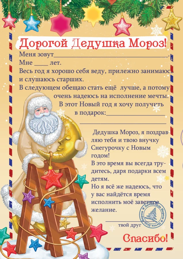 Мы привыкли, что дети пишут письма Деду Морозу, но настоящее волшебство произойдет, если Дед Мороз отправит ответное персональное послание! Письмо можно оставить под елкой или опустить в почтовый ящик.