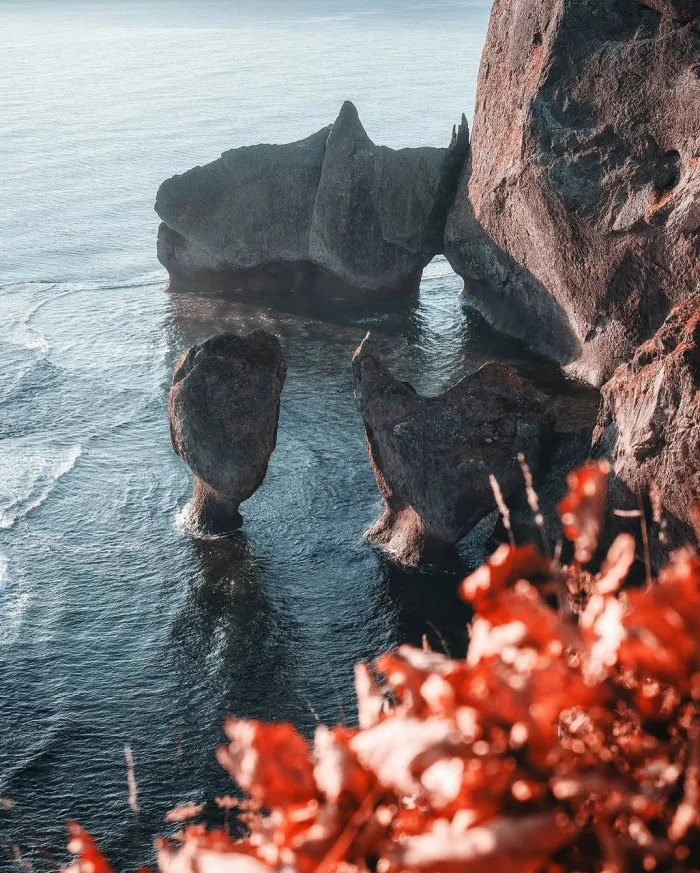 Главная гордость бухты — её скальные образования. Мощные утёсы, природные арки, кекуры, вырастающие прямо из воды, будто созданы не природой, а художником, который решил добавить в морской ландшафт немного фантазии. Многие скалы имеют причудливые очертания, и путешественники нередко придумывают им собственные имена. В солнечную погоду контрасты камня, тумана и сверкающих волн создают впечатление живой картины.