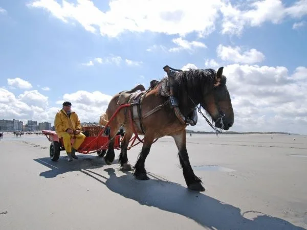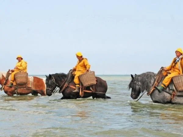 Ловля креветок верхом на лошадях происходит в тёплое время года. Незадолго до отлива, когда вода отступает, но не полностью, креветоловы в ярких жёлтых плащах и высоких сапогах выезжают на своих брабансонах (бельгийских тяжеловозах) в море и ведут их вдоль берега, волоча за собой большие сети.