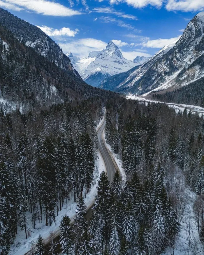 На Кавказе немало впечатляющих трасс, но зимой у дороги Теберда — Домбай нет равных. Когда многие горные маршруты становятся непроходимыми под толстым слоем снега, эта дорога продолжает радовать путешественников открытыми видами и настоящей зимней магией. Здесь каждая поворотная дуга открывает новую панораму, а окружающие горы словно соревнуются между собой за право быть самыми красивыми.
