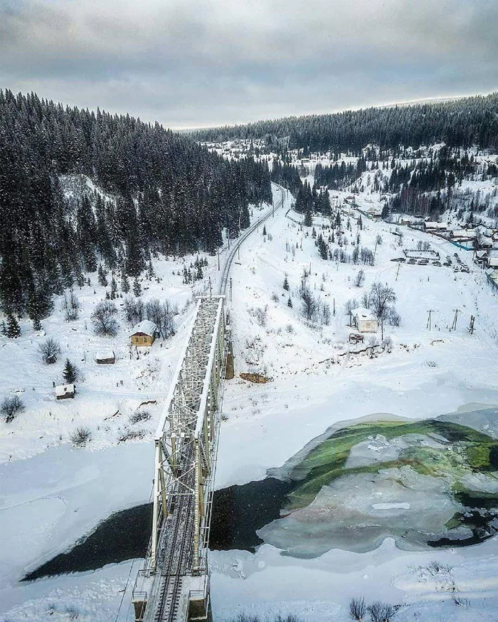 Но и сама Усьва заслуживает внимания. Посёлок уютно раскинулся вдоль одноимённой реки, и его главными «декорациями» стали мосты, organically вписанные в окружающий ландшафт. Автомобильный и железнодорожный мосты расположены рядом друг с другом, образуя узнаваемый дуэт, который часто становится центром фотосессий. Осенью они утопают в золоте листвы, а зимой на фоне снежных берегов смотрятся особенно живописно.