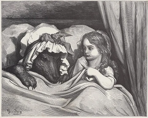 Позже сказку адаптировали, и появился охотник, который спасает девочку и бабушку. Впоследствии Шарль Перро сочинил для этой истории оптимистичный финал и добавил мораль для всех, кого всякие незнакомцы зазывают к себе в кровать: