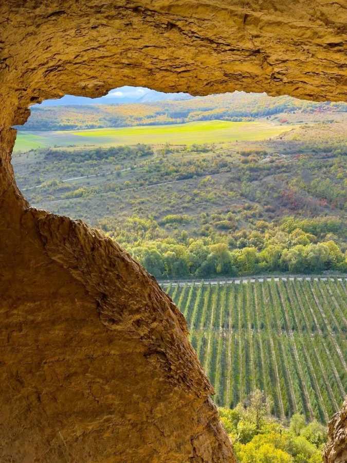 Хотя его часто называют «природной акустической системой», звук здесь отражается скорее мягко, чем эффектно. Зато виды — без преувеличения великолепные: долина Мокрого Индола, осенние гранатовые кусты, виноградники и яблоневые сады образуют живую панораму, от которой трудно отвести взгляд.