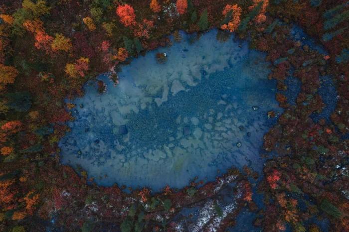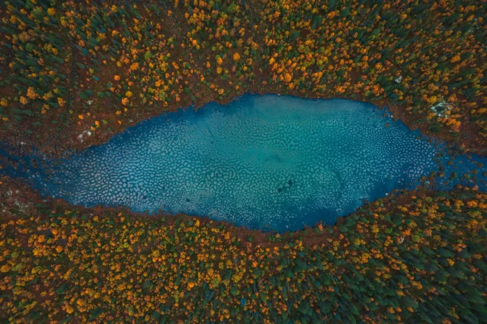 Дно этих озёр испещрено идеальными многоугольниками: треугольниками, четырёхугольниками, пятиугольниками и даже сложными многогранными фигурами. Геологи объясняют это явление так: в условиях экстремальных зим здесь десятилетиями формируются морозобойные трещины. Замерзание и оттаивание заставляют грунт смещаться, а подземные ледяные линзы постепенно «рисуют» на дне узоры — ровные, строгие и удивительно гармоничные.