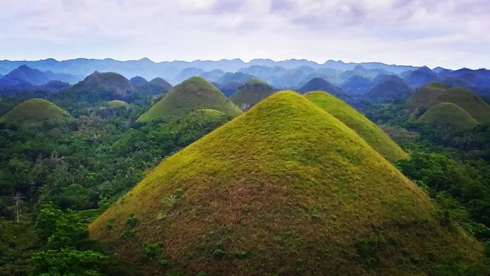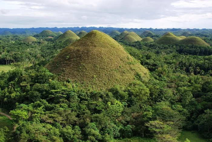 Представьте, что вы летите над филиппинским островом Бохоль в сухой сезон. Под вами раскинется сюрреалистичный пейзаж: ровные ряды идеальных конических холмов, укутанных в выжженную солнцем траву и напоминающих гигантские шоколадные трюфеля.