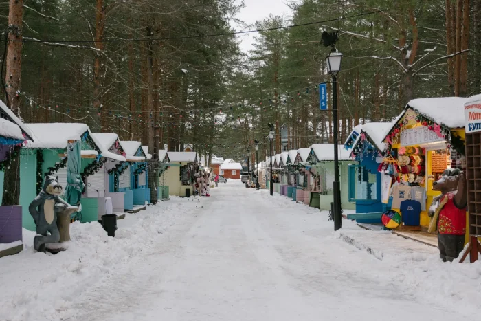 По пути встречается множество торговых палаток с сувенирами и сезонными подарками: расписными пряниками, валенками и унтами, варежками, шапками и детскими игрушками.
